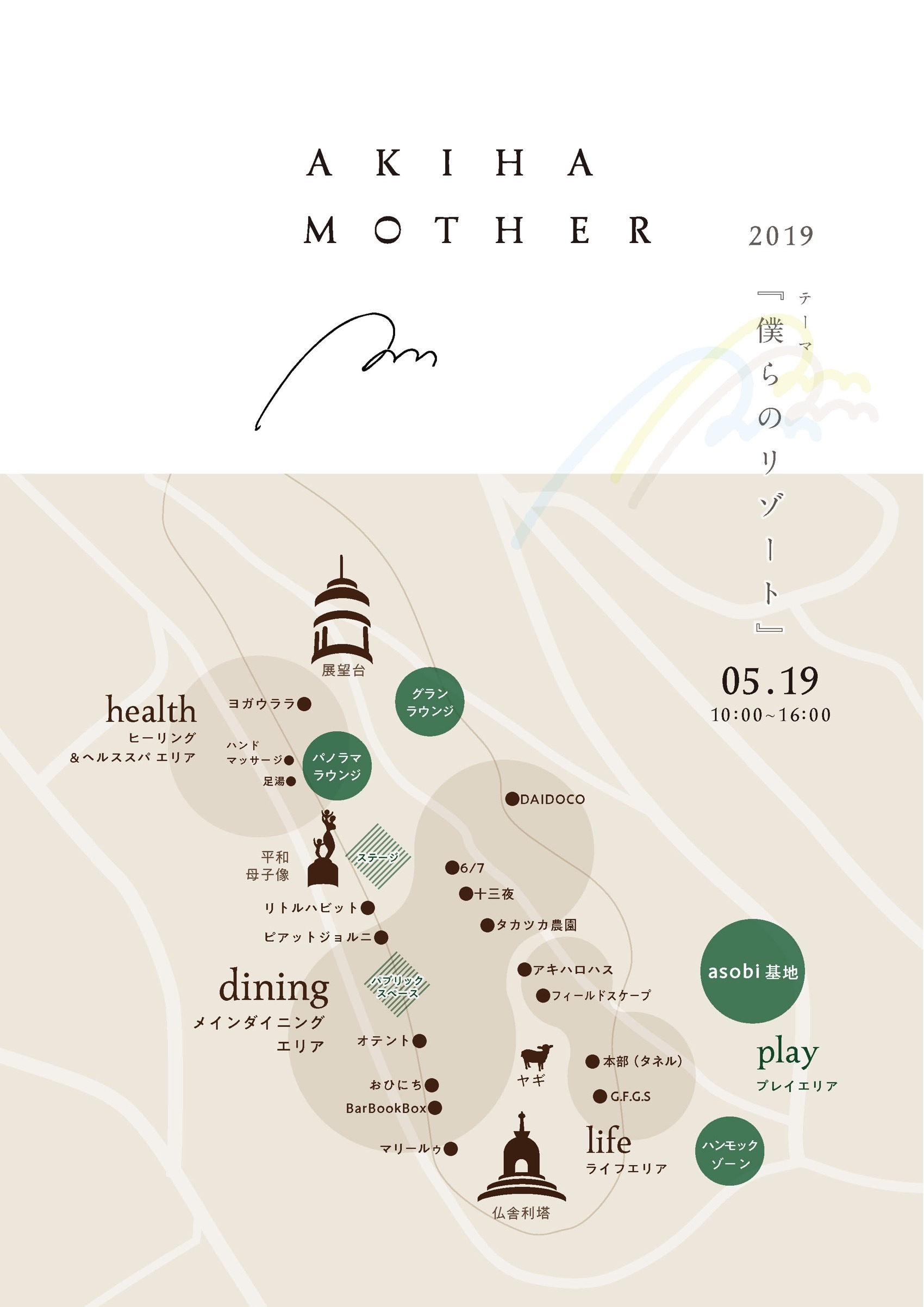 生態系のmother(生み出す母)を継続したテーマに掲げ、生態系を司る秋葉山を舞台にmother的な視点で暮らしに関わる事象を提案する。